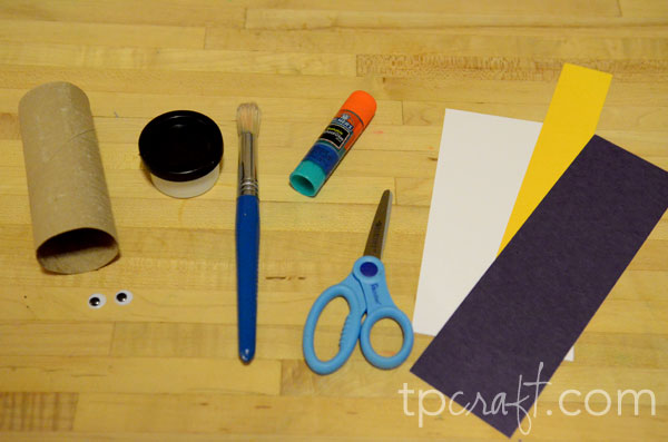Penguin Supply List: 1 toilet paper roll, black paint, glue, scissors, white paper, yellow paper, 1 other colored paper, google eyes