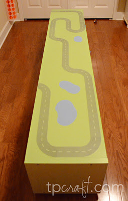 I painted the top of the bookcase green and then added some blue lakes and some road decals that I got at Target.