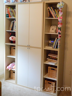 This is what our Ikea bookshelves looked like before the transformation. I have no idea what they are called but we got them a few years ago.