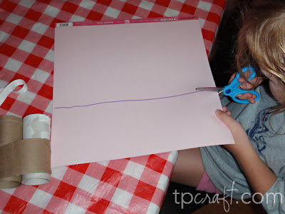 Start by measuring and cutting a piece of construction paper that is as wide as your toilet paper roll is long. Cut all the way across the paper at this length.