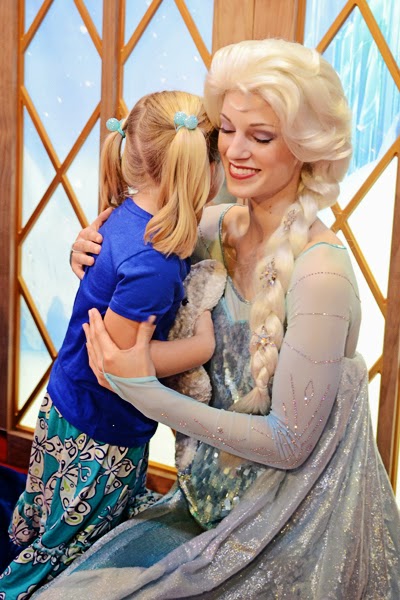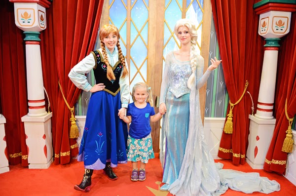 So we took the kids to Disney a few weeks ago and it was super fun. The parks weren’t crowded at all and the weather was beautiful {and sunny}. The only line we waited in was so that Kiley could meet the princesses from Frozen. So here she is with Anna & Elsa in all their glory.