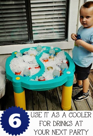 Creative Play | Sand & Water Table Use It as A Cooler For Drinks at Your Next Party {10 Fun Things to Do with Your Water Table} August 16, 2014 Shannon This is my favorite use of the water table. Because they have a plug at the bottom to drain water, they make great coolers for drinks. Check out some other fun ideas for your water table at Jacksonville Moms Blog. cooler sand and water table
