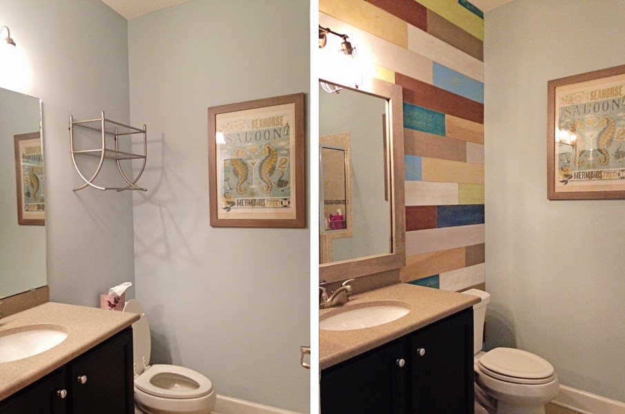 I declared 2015 the year of the bathroom projects around here and I’ve started off with a bang. My first DIY project was to install a plank wall in our downstairs bathroom. I took no pictures during the project, because I wasn’t really sure how it was going to turn out. I’ll post my steps down below, but if you want a more in-depth tutorial, I recommend this one from Life, Crafts & Whatever, and this one from This Nest is Blessed. It was much easier than I expected and turned out phenomenal, in my opinion.
