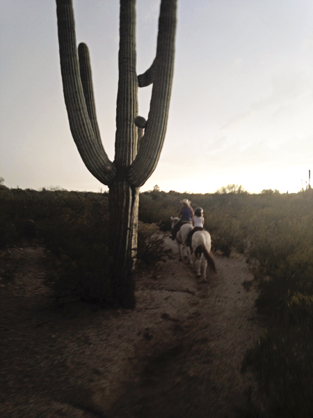 Pretty much the only thing my daughter wanted to do on our trip out west was to ride horses. Since she’s only 5, she was too young to ride down into the Grand Canyon, or even a trail in Bryce Canyon. So when we reached Tucson we started looking up places to take her horseback riding. We decided on an evening ride with Houston’s Horseback Riding, that would take us through Saguaro National Park.